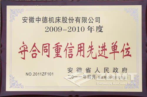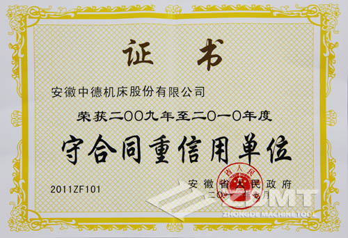 這也是我公司第三次獲得省政府授予的“守合同重信用先進(jìn)單位”稱號,公司不斷發(fā)揚“守合同、重信用”的良好傳統(tǒng),不斷探索、潛心經(jīng)營,逐漸建立、健全了一套適合市場規(guī)律和行業(yè)、企業(yè)自身特點的合同管理機制,強化了合同的管理,確保了合同的履行,呈現(xiàn)出合格率100%,優(yōu)良率85%以上,履約率達(dá)100%的喜人景象,取得經(jīng)濟效益和社會效益的雙豐收,贏得了社會各界的廣泛認(rèn)可,增強了社會大眾對“中德機床”品牌的認(rèn)知度,加速了品牌傳播、提升了品牌知名度,樹立了中德機床公司良好的社會形象。
