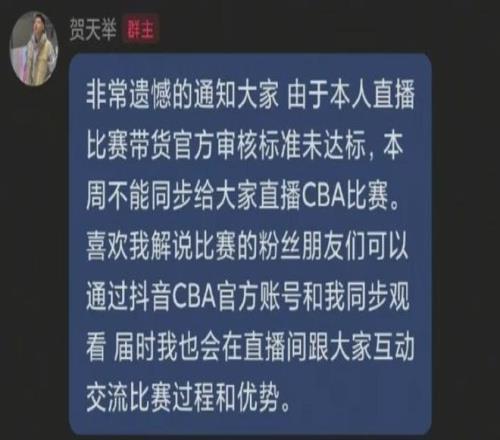但這個收入是不穩(wěn)定且?guī)缀醪豢赡苓_到跟咪咕簽約的水準的,各位籃友想必心里也清楚,真沒有太多人愿意在CBA上面進行大規(guī)模的消費。 舉個最簡單的例子,昨晚遼籃名宿賀天舉在自己的粉絲群里說,因為他在轉(zhuǎn)播時的帶貨銷量不達標,暫時失去了個人抖音賬號直播CBA比賽的資格。