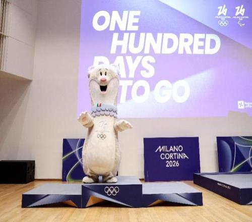 10月29日,米蘭-科爾蒂納冬奧會吉祥物“蒂娜”與冬奧會頒獎臺合影。 當(dāng)日,距離2026年米蘭-科爾蒂納冬奧會開幕式100天之際,意大利倫巴第大區(qū)政府在米蘭舉行慶祝活動。 新華社發(fā)