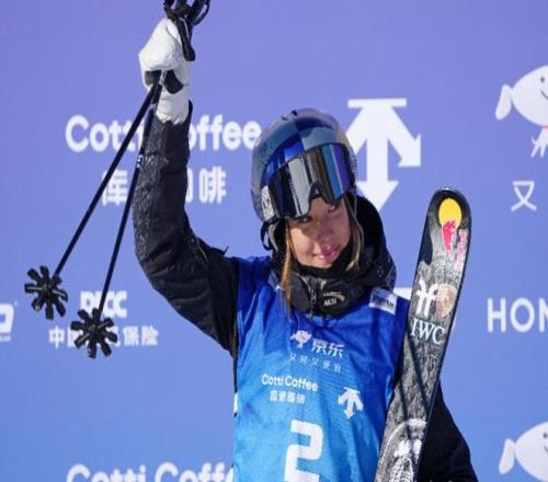 12月11日,中國選手谷愛凌在國際雪聯(lián)自由式滑雪U型場地技巧世界杯女子組資格賽后。新華社發(fā)