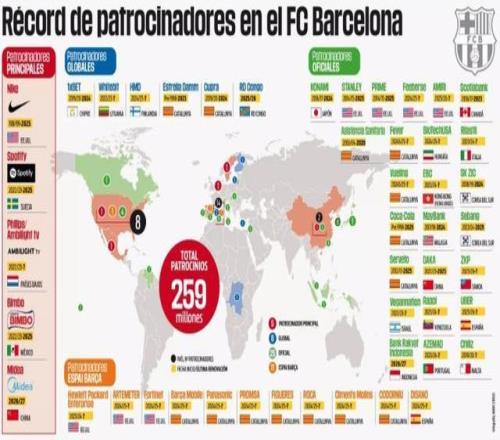這一成績來自贊助部門持續(xù)推進(jìn)的工作。該部門在馬爾克-布魯伊克的領(lǐng)導(dǎo)下,致力于鞏固既有的歷史性合同,同時(shí)在全球范圍內(nèi)拓展新的合作伙伴,整體戰(zhàn)略由俱樂部首席執(zhí)行官馬內(nèi)爾-德爾里奧負(fù)責(zé)統(tǒng)籌。德爾里奧表示:“近年來,巴塞羅那足球俱樂部進(jìn)行了清晰、堅(jiān)定且結(jié)構(gòu)非常完善的投入,旨在轉(zhuǎn)型其商業(yè)模式,并適應(yīng)全球足球面臨的新挑戰(zhàn)?!本銟凡糠矫鎻?qiáng)調(diào),這一戰(zhàn)略的成果,印證了在經(jīng)歷近年經(jīng)濟(jì)困難之后所采取的發(fā)展方向是正確的。 目前,巴塞羅那足球俱樂部在全球范圍內(nèi)擁有接近50家贊助商,合作伙伴遍布五大洲,展現(xiàn)出在地理分布上持續(xù)且均衡的國際化擴(kuò)張。美洲市場中,合作伙伴包括來自墨西哥的賓堡、加拿大的豐業(yè)銀行以及委內(nèi)瑞拉的拉皮,美國則集中了多達(dá)12家不同贊助商,成為俱樂部在該領(lǐng)域的關(guān)鍵市場之一。 亞洲贊助商數(shù)量同樣增長明顯。巴薩目前與來自日本的科樂美、中國的DAKA以及將于2026年7月1日起生效的美的、韓國的SK ZIC和世邦、馬來西亞銀行以及中國香港的EBC保持合作關(guān)系。 在歐洲,巴薩的合作伙伴涵蓋瑞典(Spotify,主贊助商)、荷蘭(飛利浦/安必亮電視)、芬蘭(HMD)、意大利(Rilastil)、葡萄牙(Azemad)等地,其中瑞典的Spotify是俱樂部主贊助商。非洲方面,民主剛果政府與巴薩達(dá)成合作,該協(xié)議將為俱樂部帶來超過4000萬歐元收入,但因該國長期面臨人權(quán)問題指控,也成為近期最具爭議的商業(yè)合作之一。 德爾里奧指出,這種增長并非短期現(xiàn)象。他表示:“在2021-22賽季到2025-26賽季之間,俱樂部的贊助收入增長了75%,年均增長率為15%。這一成果源于一項(xiàng)以收入多元化、為合作伙伴創(chuàng)造價(jià)值以及長期愿景為基礎(chǔ)的戰(zhàn)略?!?/p>
