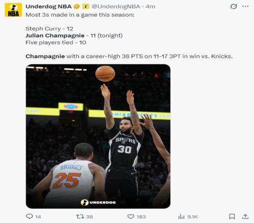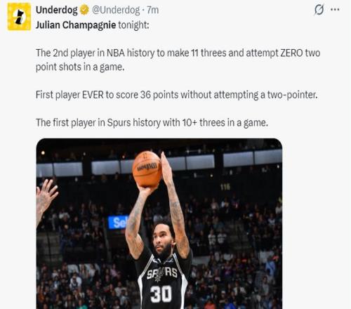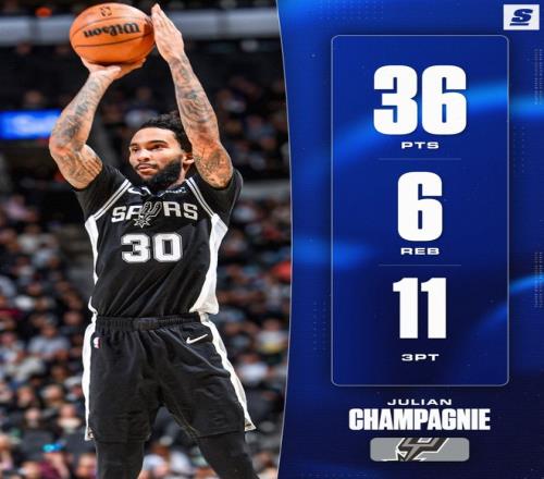 文班亞馬傷退31+13,奇兵11記三分刷爆紀(jì)錄,馬刺19分逆轉(zhuǎn)尼克斯